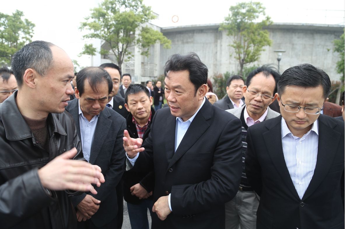 ,广东省普宁市市委副书记、市长陈群峰带队的考察团走进江滨水处理公司实地考察滨海印染产业集聚区污水集中处理模式,区委常委傅青春等领导陪同调研。