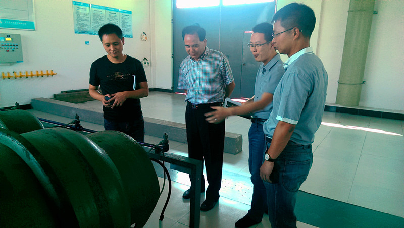 图为倪阿泉董事长在供水公司凤凰山泵站检查工作