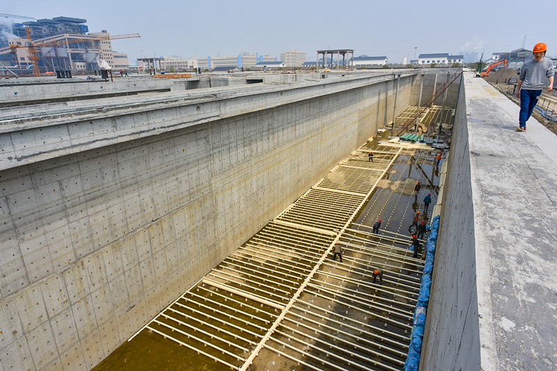 自2017年4月动工至今,投资5亿元的20万吨/日集中预处理二期工程进展顺利。目前,鼓风机、吸刮泥机等关键设备已安装到位,预计4 月底完成设备安装,5月底完成调试,6月底如期投运,形成集聚区40万吨/日集中预处理能力,届时可全面满足集聚区一、二、三期60家企业约35万吨/日的污水排放需求。