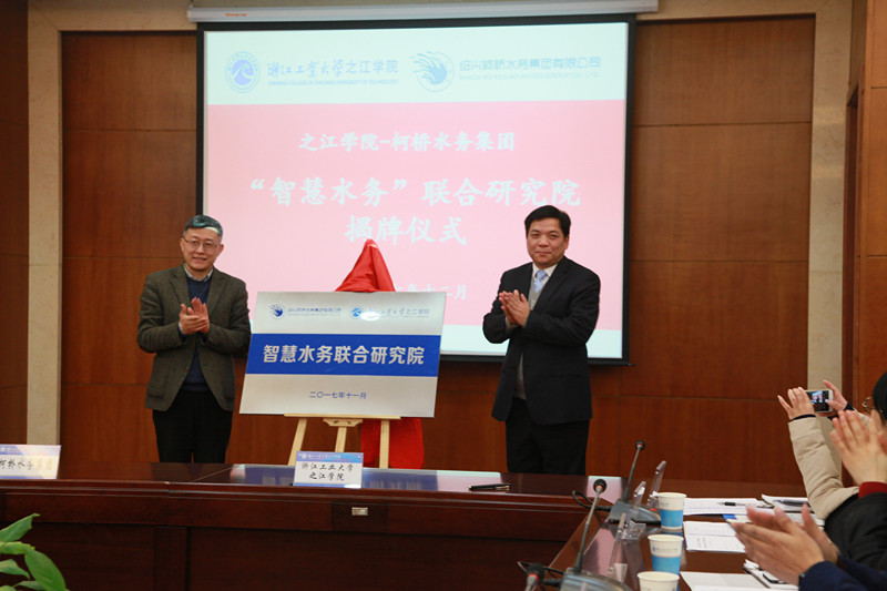 12月6日,柯桥水务集团—浙江工业大学之江学院全面战略合作签约暨“智慧水务”联合研究院揭牌仪式在之江学院行健楼举行。集团董事长周俭、副总经理冯梁峰和各部室及下属各单位负责人,之江学院院长李澎林、副院长王河江等出席仪式。周俭、李澎林一起为“智慧水务联合研究院”揭牌,并分别致辞;冯梁峰、王河江分别代表双方签署合作协议。