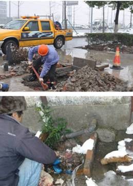 因连日的雨雪冰冻天气,公司虽已做了大量供水设施的防冻保暖工作,但全县仍有多起供水管道发生事故,为保障全县供水用户正常用水,公司抢修人员加班加点,对冰裂的管道、阀门等进行抢修。