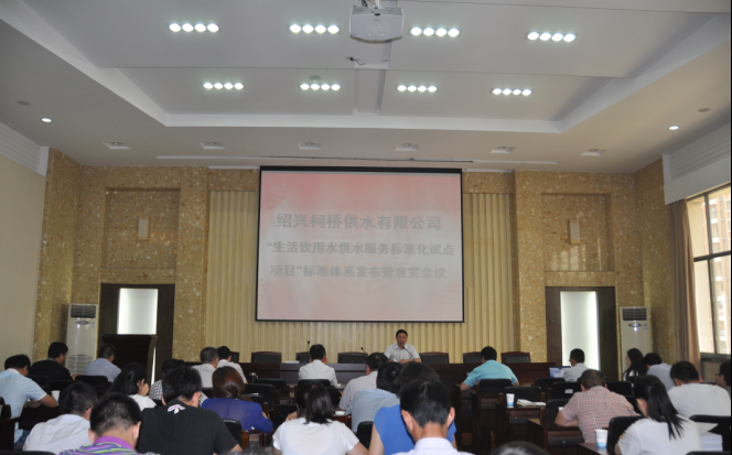 会上,来自浙江省标准化研究院的朱培武老师对“生活饮用水供水服务标准化”从立项、调研、起草、反馈工作做了全面回顾,并对相关重点标准做了详细介绍。公司任副总对标准实施阶段提出了工作部署和要求,一要着力宣贯标准,做到人人知晓标准;二要全面执行标准,做到人人反馈标准;三要强化考核标准,做到人人提升标准。