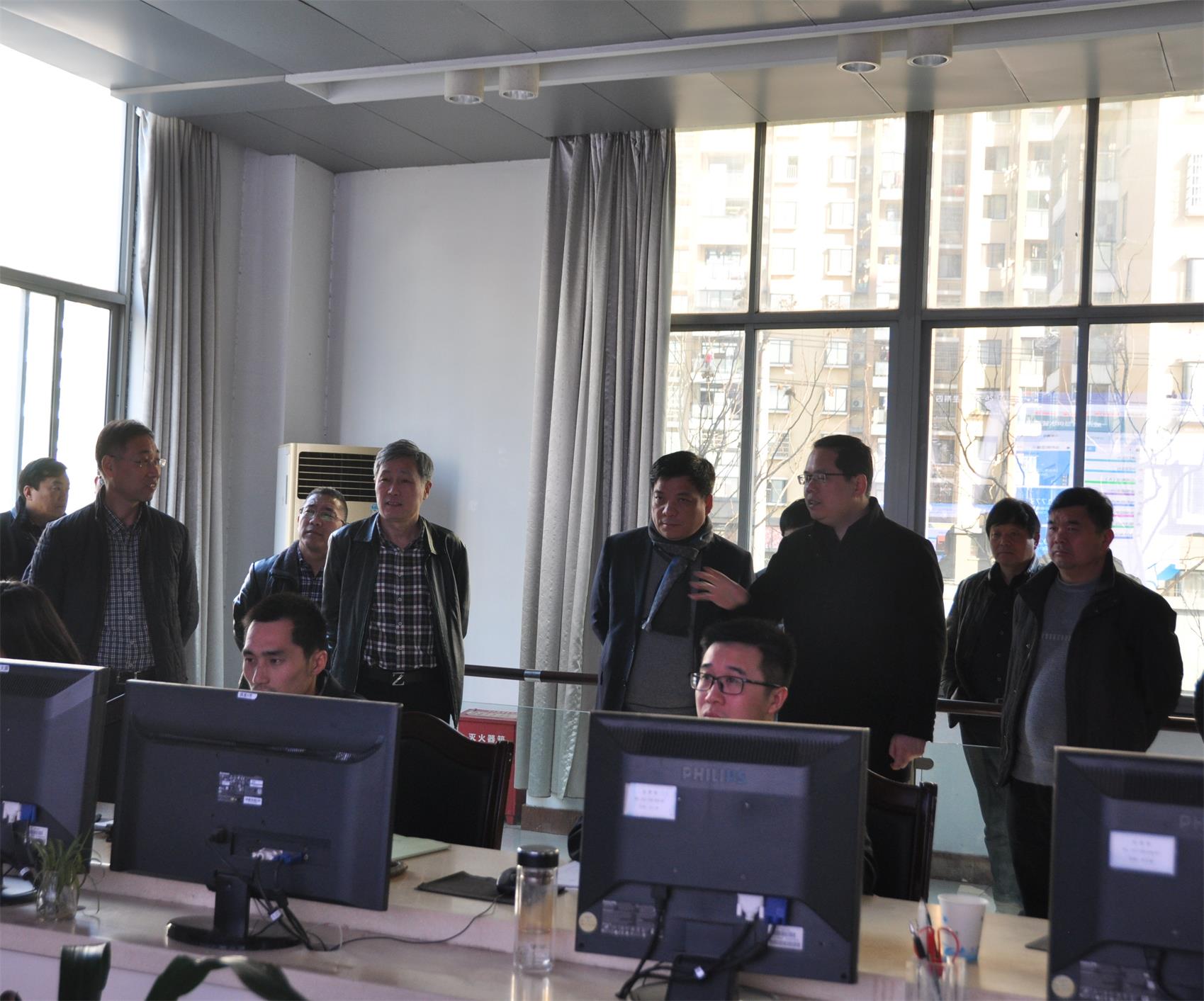 在调度中心,齐副区长在听取公司领导对全区供水工作整体情况汇报后,对供水调度、应急抢修和96390水务热线等一线职工表示了慰问,并对他们在春节期间坚守岗位,为全区百姓平安供水作出贡献表示感谢。