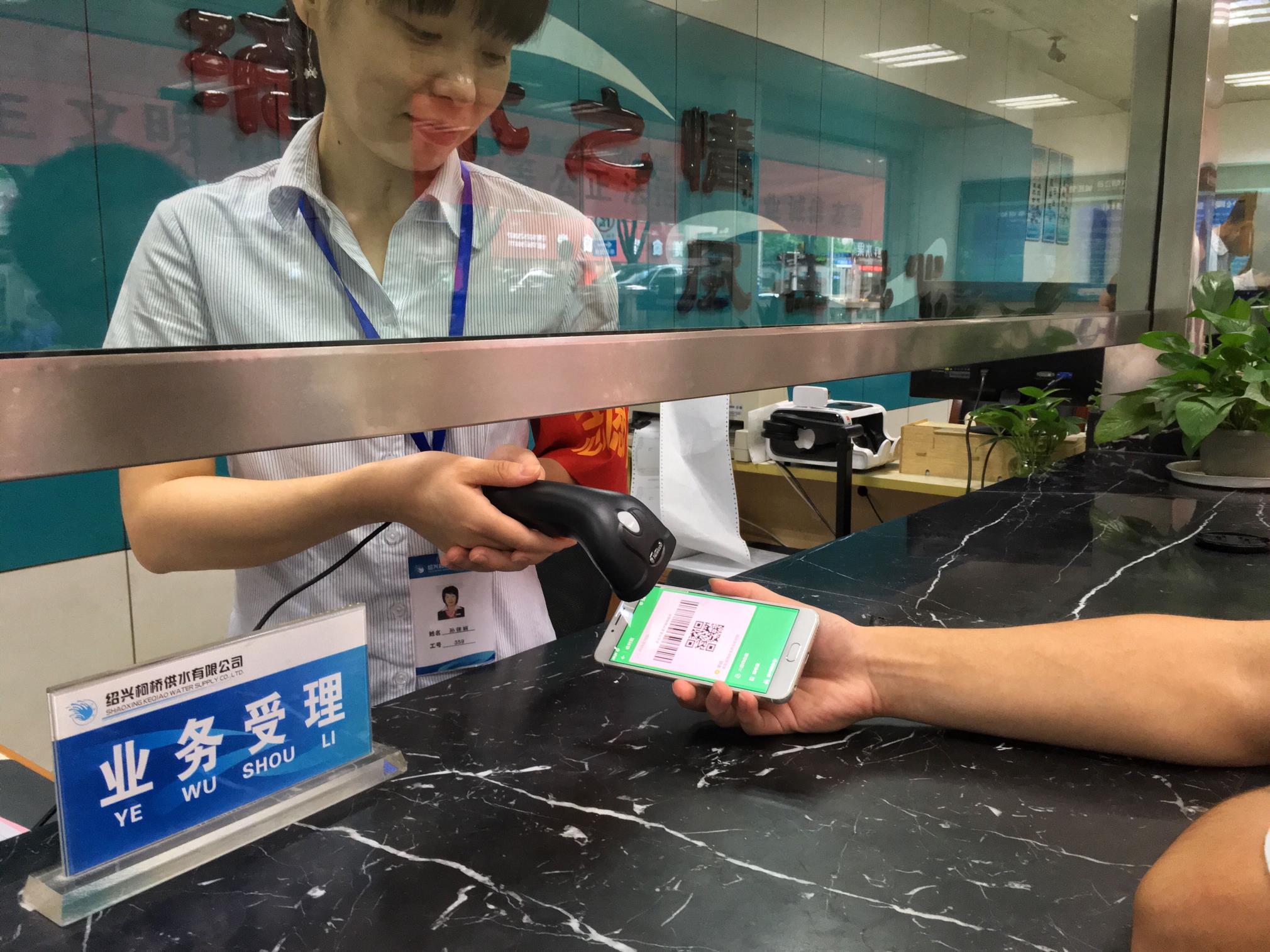近日,柯桥供水公司在开通微信、支付宝支付在线支付平台的基础上,与兴业银行绍兴分行合作推出了供水营业厅窗口支付宝、微信线下扫码支付功能,用户在营业厅缴费时无需携带现金,只需一部智能手机便可完成缴费。使用中,用户只需打开微信或支付宝APP,点击付款,向工作人员出示付款条码即可,大大简化收费、找零等流程的同时,大大降低了营业厅收到假币、找零出错等风险,为收费管理提供了创新解决方案。